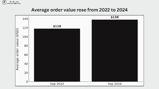 - Average order value increased from 118 U.S. dollars in September 2022 to 138 U.S. dollars in September 2024.