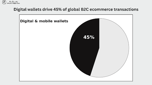 - 45% of global B2C ecommerce transactions are completed using digital or mobile wallets.
