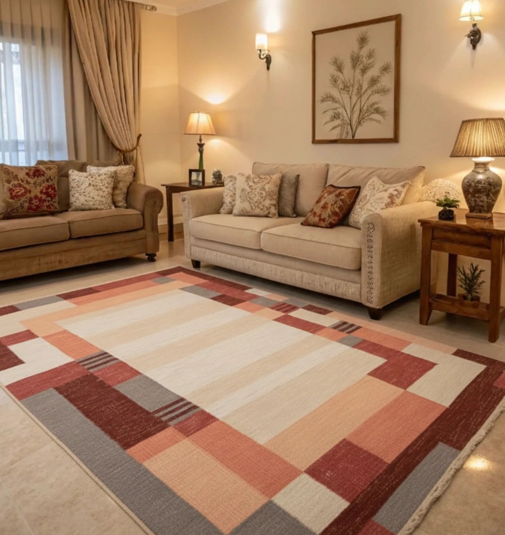 Jute Cotton Blend Kilim Rug For Home Decor - KLM 012 (170 x 240 cm)