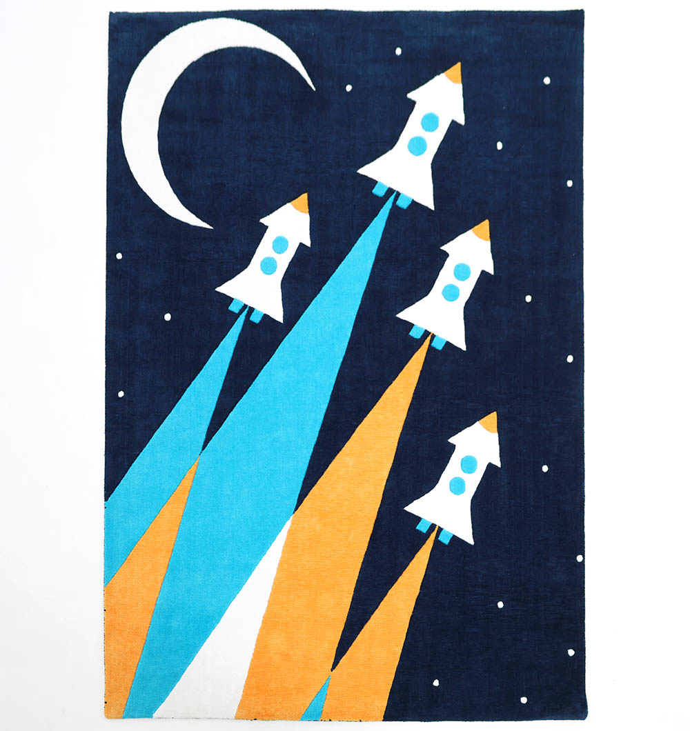 Bring the vastness of space into your home with the imaginative KD-001 Space Rocket Area Rug. The vibrant, striking design featuring rockets against a night sky is the perfect backdrop for bedtime stories and epic space adventures. This rug is built to handle heavy playtime. The generous 170×240 cm size anchors a whole play area or a large shared bedroom. Crafted from? Polyester and Cotton, this rug is durable, stain-resistant, and holds its color against heavy use. Ensures a consistent, low-pile surface that’s comfortable for crawling and sitting.
