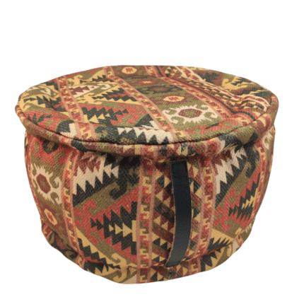 Rust & Off White Color Decor Living Room Cotton Pouf with Leather Handle – PF 132 (40x40x40cm)