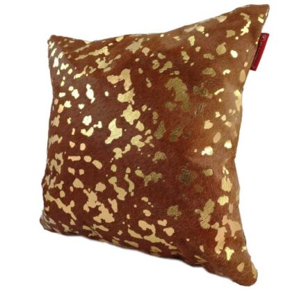Tan & Gold Color Handmade Leather Cushion with Filler – CS 092 (45x45cm)