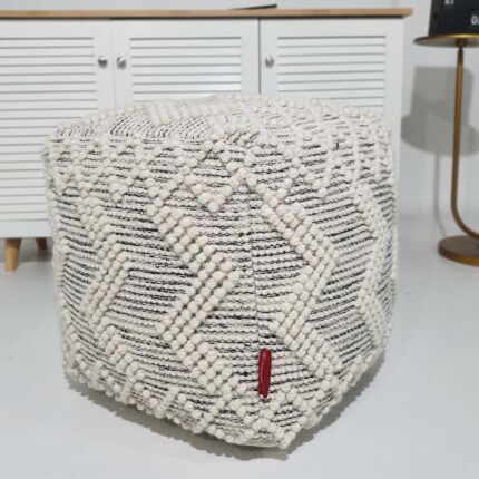Natural White Decorative Pouf for Living Room – PF-156 (50x50x30cm)
