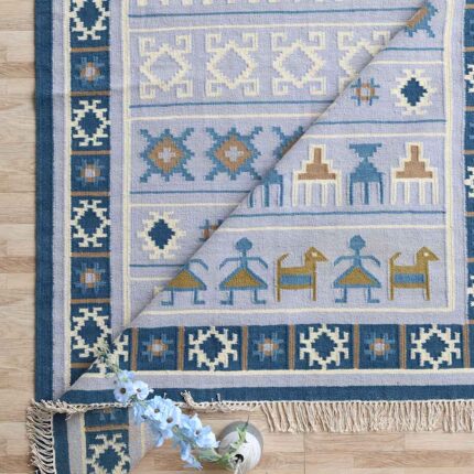 - Digital Printed Dhurries – Flat-woven rugs with sharp, vibrant printed designs.