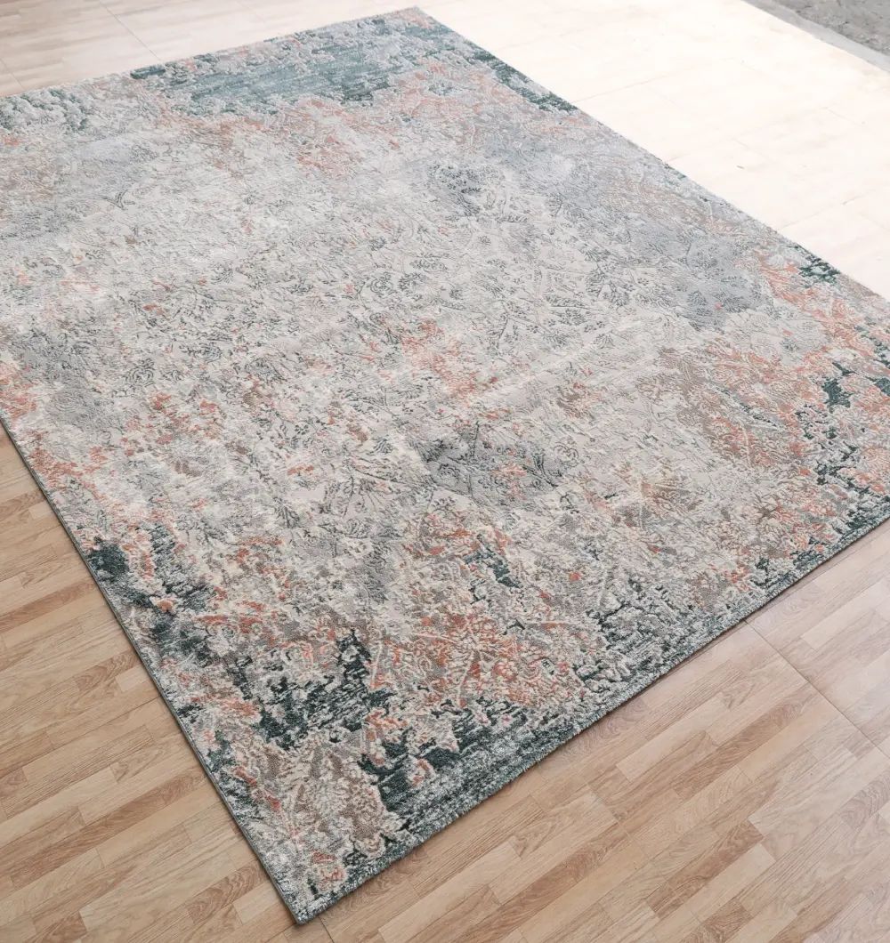 Soft blue tones blend with warm rust highlights to create a beautifully weathered abstract texture that enhances both modern and transitional interiors. Made from 100% polyester, the MMB-49 carpet offers durability, vibrant color retention, and a smooth underfoot feel. Its spacious 270?360 cm size is ideal for living rooms, lounges, and any area needing a bold statement piece with subtle elegance.