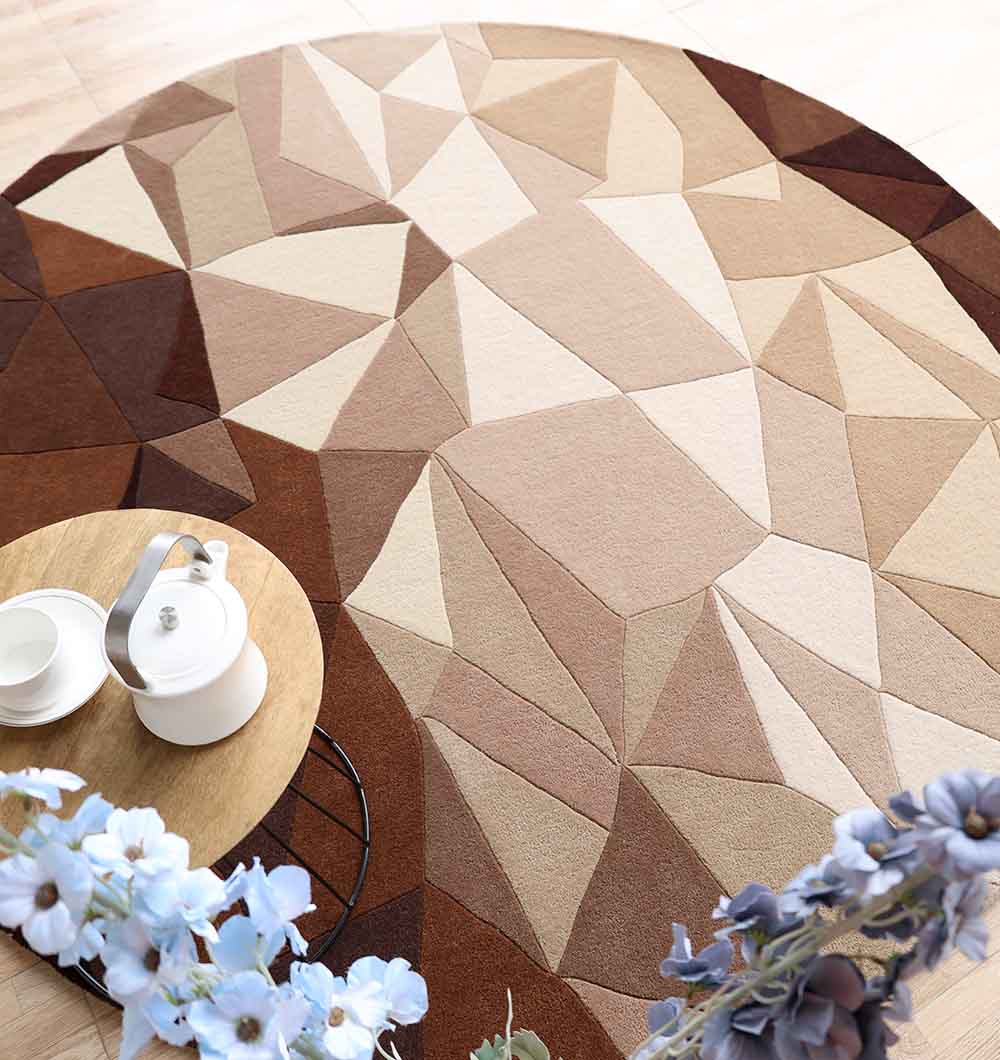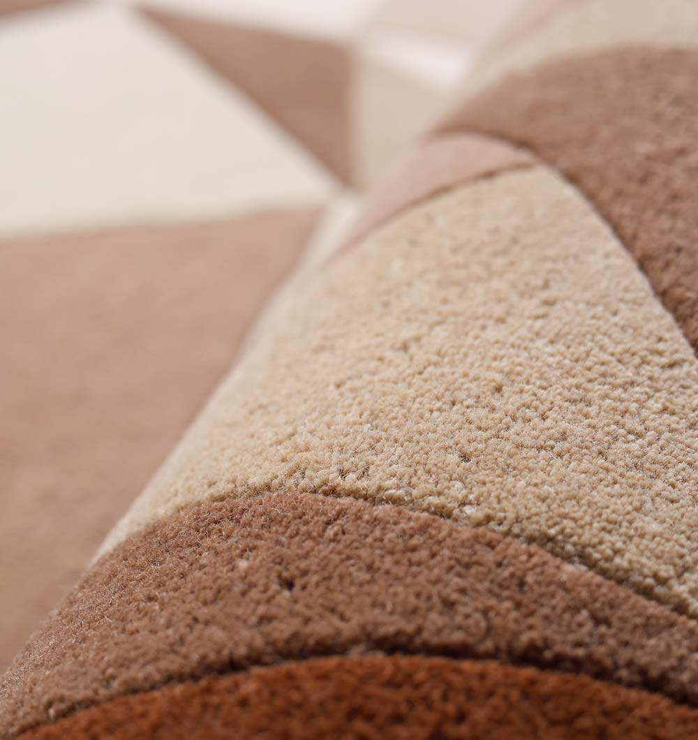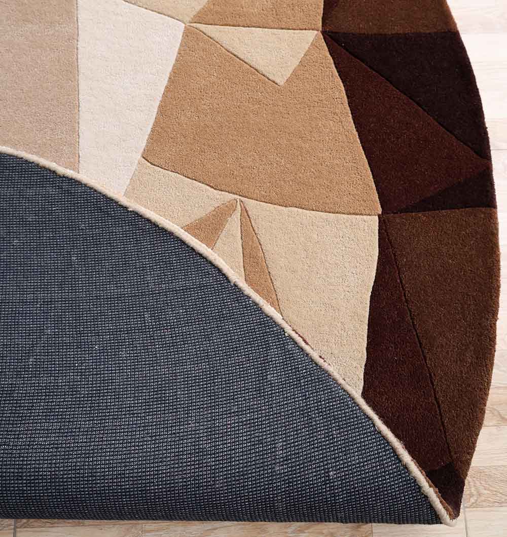 The HTW-129 Earth Tone Geometric Round Rug is a sophisticated fusion of artisanal craftsmanship and modern geometric design, perfect for adding warmth and texture to neutral interiors. This 200 cm round statement piece features a mesmerizing faceted mosaic of triangles in a balanced palette of chocolate brown, warm taupe, sand, and cream. Meticulously handcrafted from a premium heavy-duty blend of 80% wool and 20% cotton, it offers a substantial weight of 20 kg, ensuring long-lasting durability and exceptional stability on any floor surface. With a dense 1.5 cm pile height, it provides superior thermal insulation and a cushioned, luxurious feel underfoot. Its timeless circular silhouette and refined earthy color story make it an ideal choice for anchoring modern dining sets, cozy reading nooks, or minimalist living rooms seeking an artistic touch.