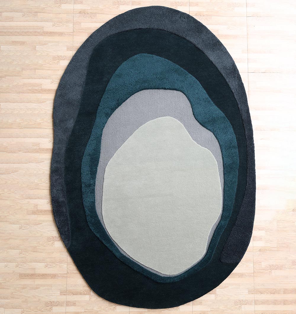 The HTW-131 Layered Abstract Shaped Rug is a high-performance artisanal piece designed to bring a calming, modern aesthetic to expansive living areas. This 200×300 cm shaped rug features a sophisticated concentric design with organic, nested “pools” of color, ranging from deep charcoal and teal to soft grey and mist. Expertly handcrafted from a premium heavy-duty blend of 80% wool and 20% cotton, it boasts a substantial weight of 30 kg, ensuring it remains perfectly flat and stable even in high-traffic zones. With a plush 1.5 cm pile height, it provides exceptional underfoot warmth and sound insulation. The fluid, asymmetrical silhouette and cool-toned multicolor palette make it a perfect choice for minimalist or contemporary luxury interiors seeking a durable yet artistically refined floor covering.