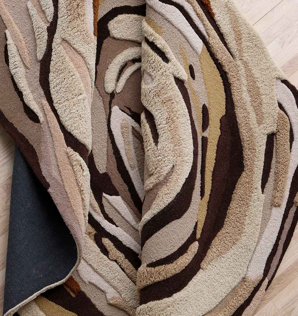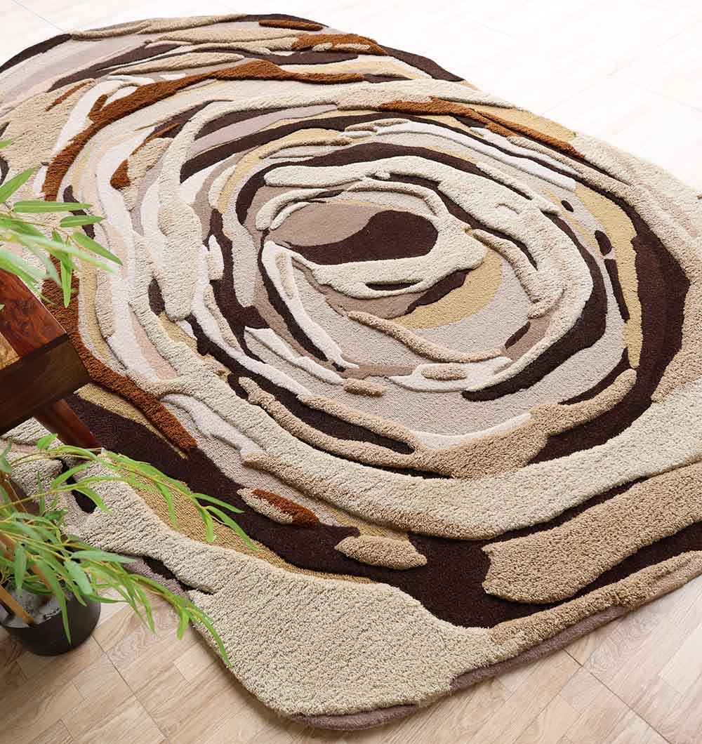 The HTW-126 Shaped Multicolor Area Rug is a premium floor covering that combines high-art aesthetics with master-level craftsmanship to anchor your modern living space. Measuring 200×300 cm, this rug features an intricate, hand-carved vortex design with organic ripples in shades of chocolate, tan, beige, and charcoal. Handcrafted from a high-density blend of 80% wool and 20% cotton, it offers a substantial weight of 30 kg and a plush 1.5 cm pile height for a luxurious underfoot experience. Its unique, non-traditional silhouette and durable construction make it an ideal statement piece for high-traffic lounges or luxury bedrooms seeking a sophisticated, sculptural touch.