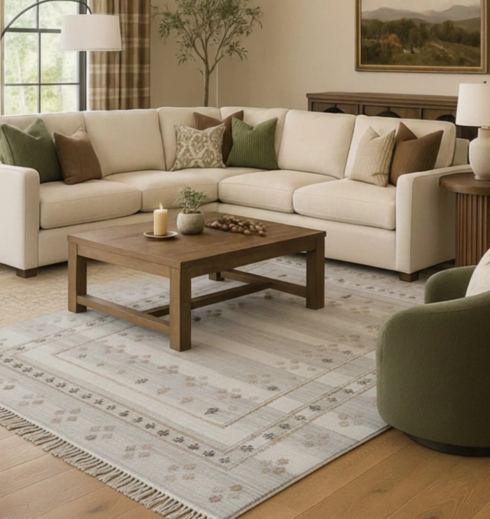 The KLM-016 Diamond Kilim is a vibrant centerpiece with a rich, traditional look. Handwoven from 80% Jute & 20% Cotton, its bold lattice pattern makes a strong style statement in any room. It offers durability, softness, and easy maintenance. Perfect for modern interiors.