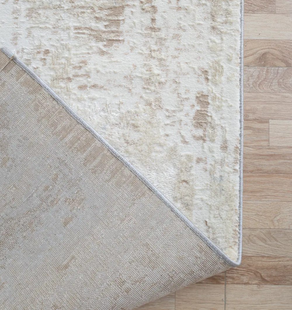 Stunning Cream & Gold Color Rectangle Shape Machine Made Turkish Rug – NM85A