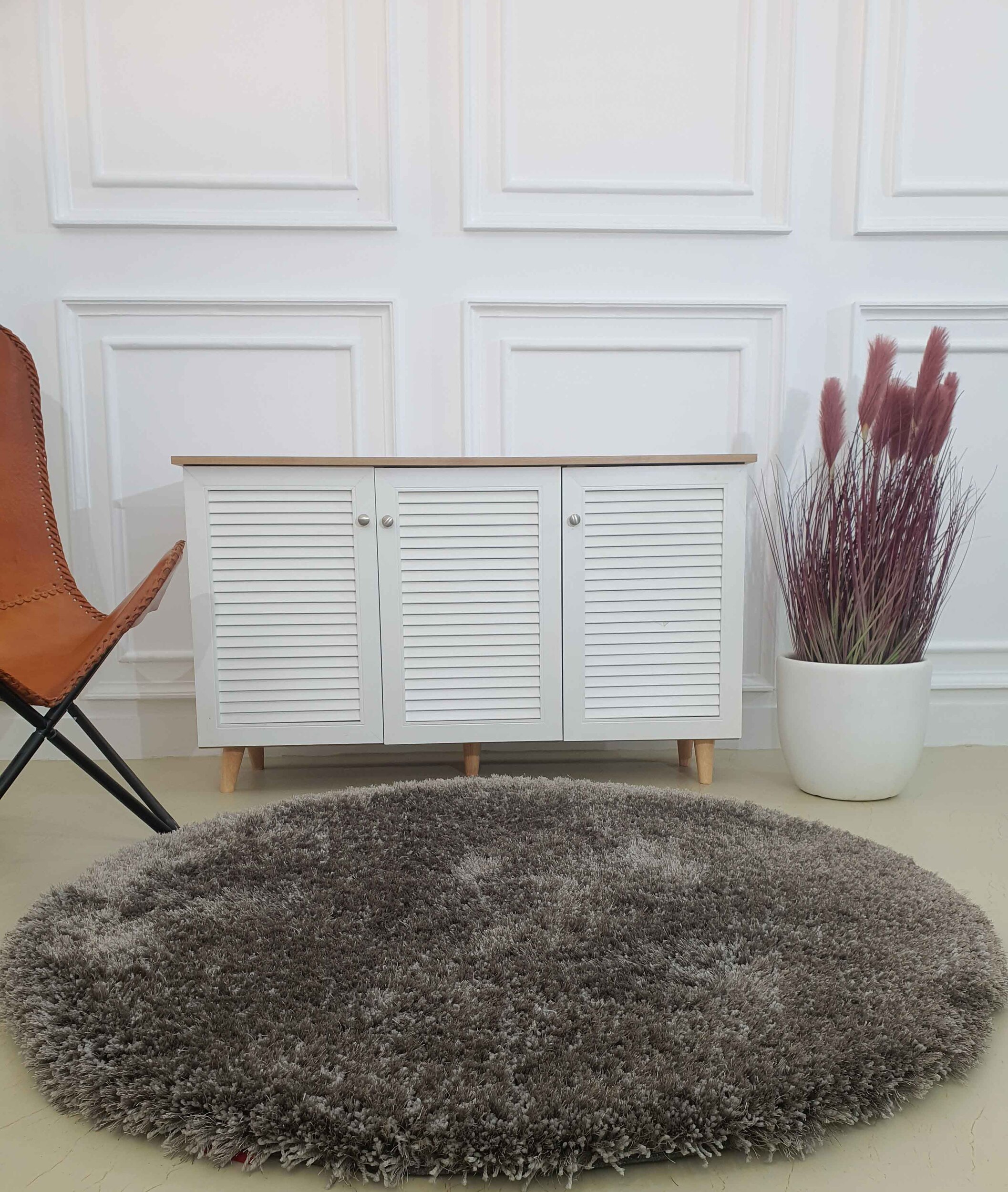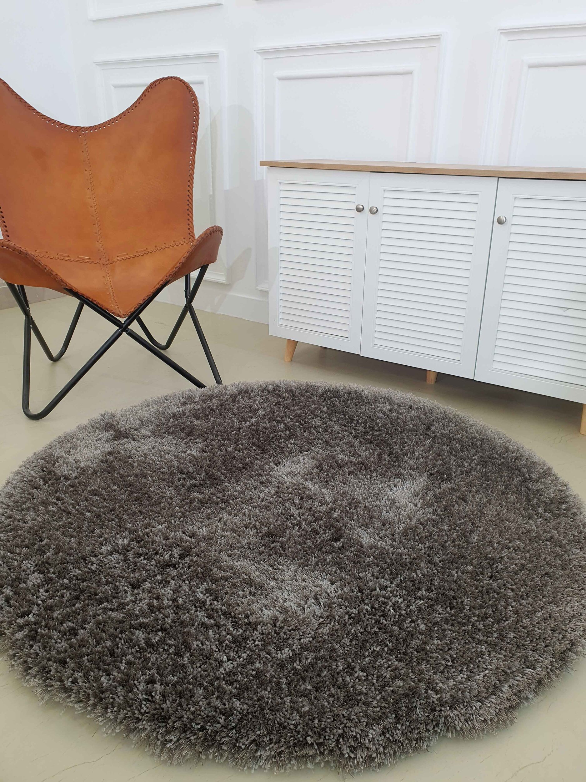 Grey Color Round Shaggy Rug – SG 05